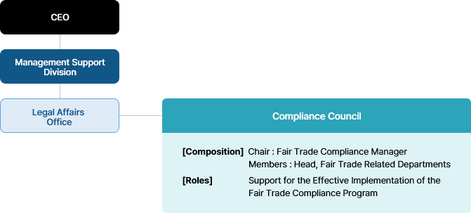 POSCO conducts risk assessments for potential legal violations through the Fair Trade Self-Inspection Checklist, led by the relevant departments. We have also established a Compliance Council consisting of department heads responsible for fair trade, along with designated compliance practice leaders, to oversee the implementation and operation of the Fair Trade CP.